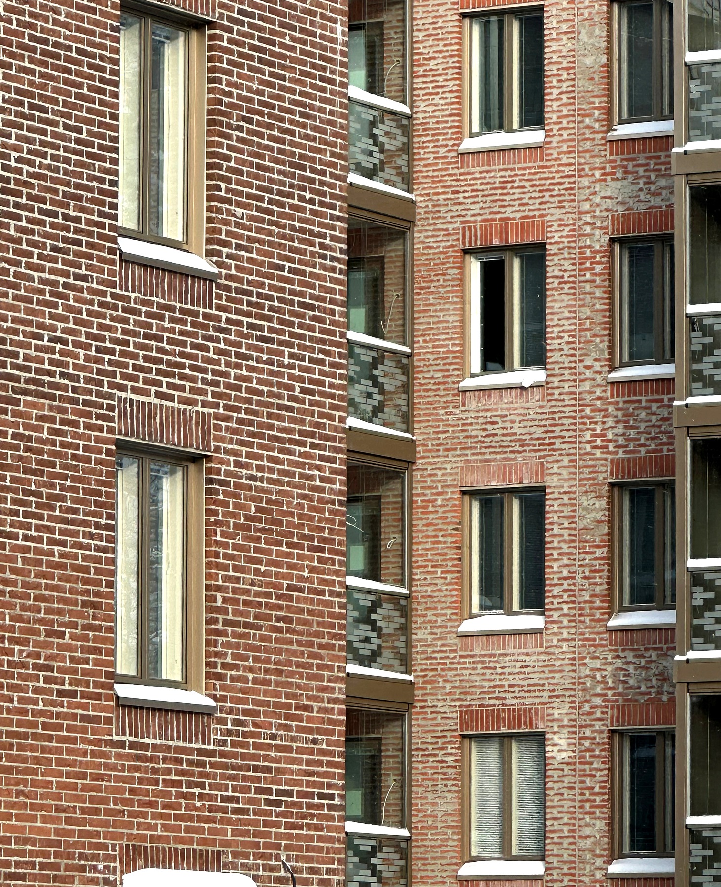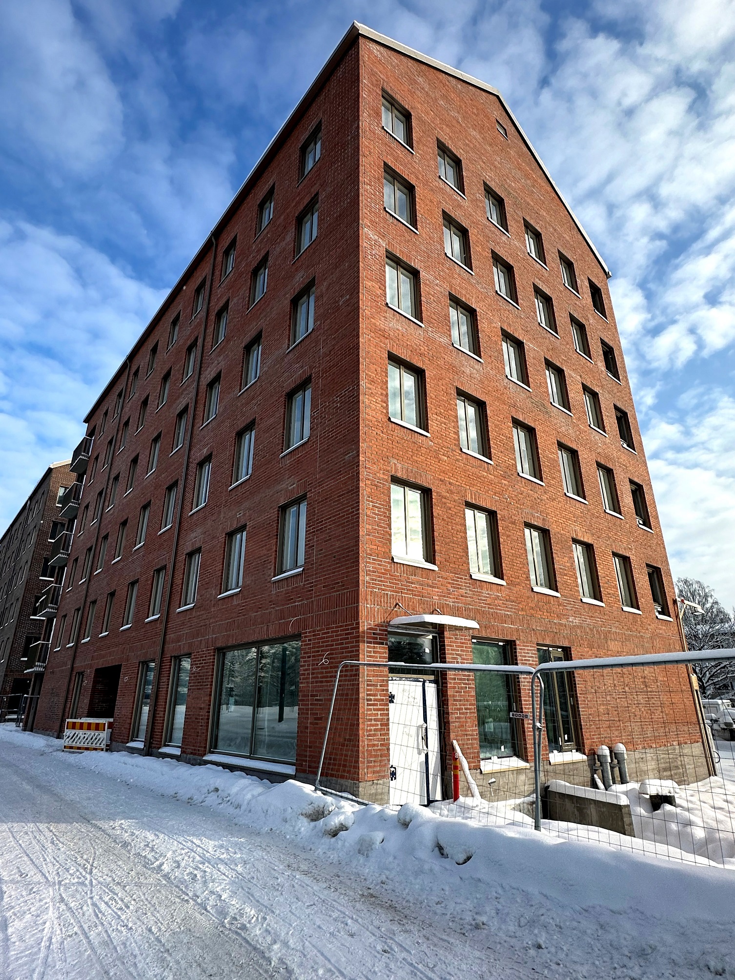 Rakennuksien julkisivuissa on hyödynnetty monipuolisesti eri tiilisävyjä, jotka tuovat elävyyttä ja rytmiä kokonaisuuteen. Kohteessa on käytetty kaarnanruskeaa (Kartano-tiili), R-punaista (Kasarmi-tiili) sekä ruukunpunaista (Kasarmi-tiili) tiiltä. Lisäksi julkisivua täydentävät saman sävyiset tiililaatat. Valitut sävyt muodostavat lämpimän ja ajattoman kokonaisuuden, joka kestää aikaa sekä visuaalisesti että teknisesti.